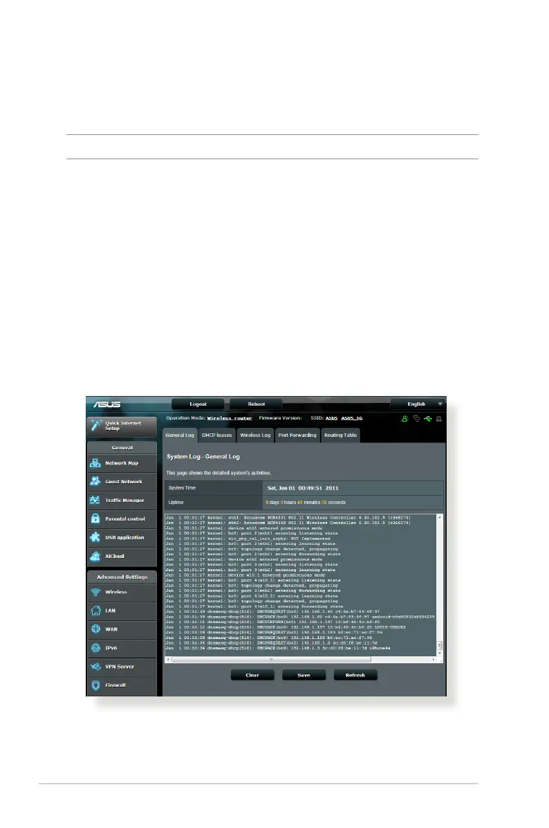 NOTE: System log resets when the router is rebooted or powered o.
