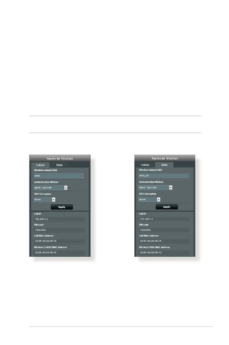NOTE: You can set up different wireless security settings for 2.4GHz and