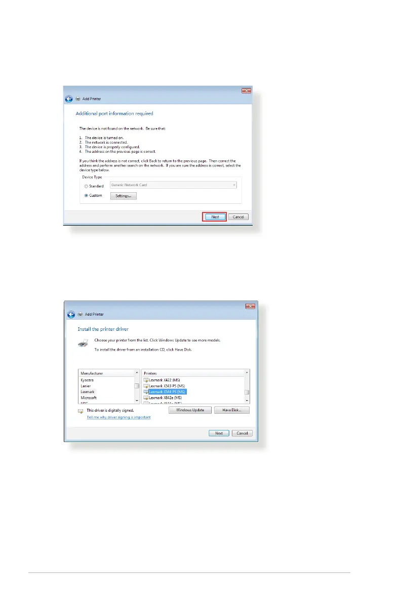 8. Install the printer driver from the vendor-model list. If your
