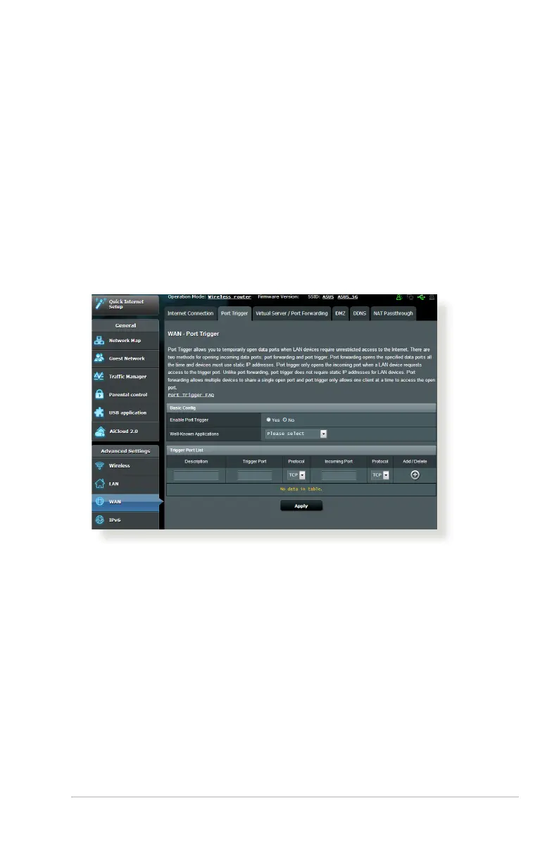• Enable Port Trigger: Choose Yes to enable Port Trigger.