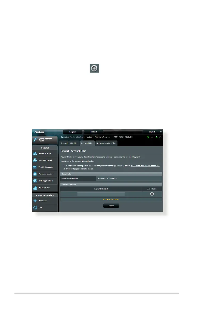 Firewall > Keyword Filter tab.