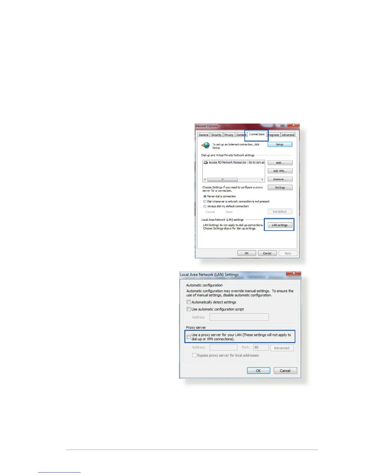 > Connections tab > LAN