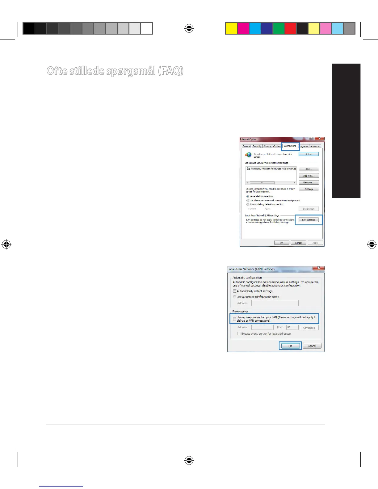 A. Deaktiver proxyserveren, hvis den er aktiveret.