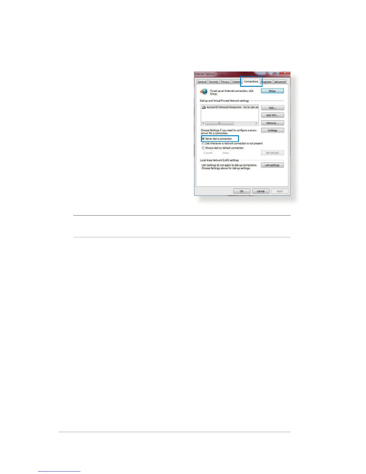 3. Tick Never dial a connection.