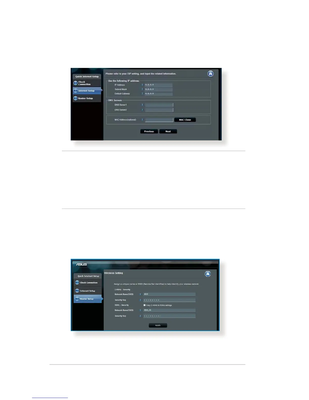 your 2.4GHz and 5 GHz wireless connection. Click Apply when