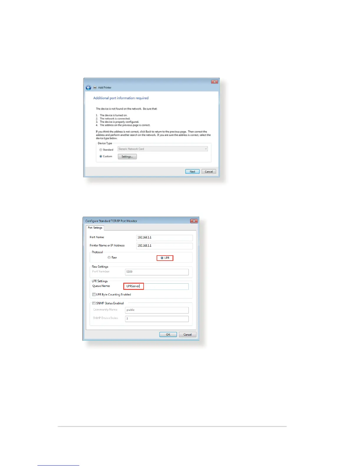 6. Set Protocol to LPR. In the Queue Name eld, key in