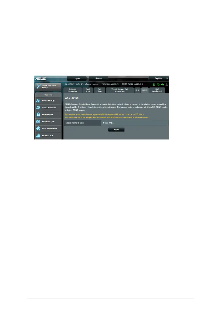 • Enable the DDNS Client: Enable DDNS to access the ASUS