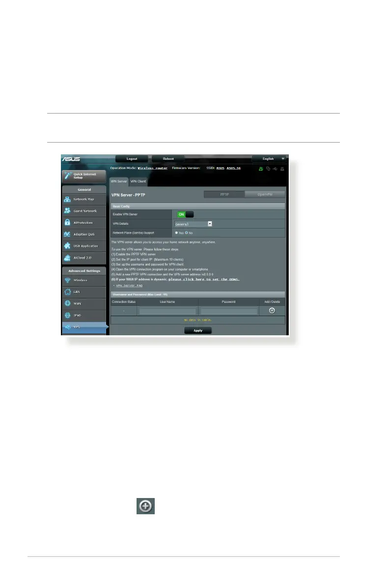1. From the navigation panel, go to Advanced Settings > VPN
