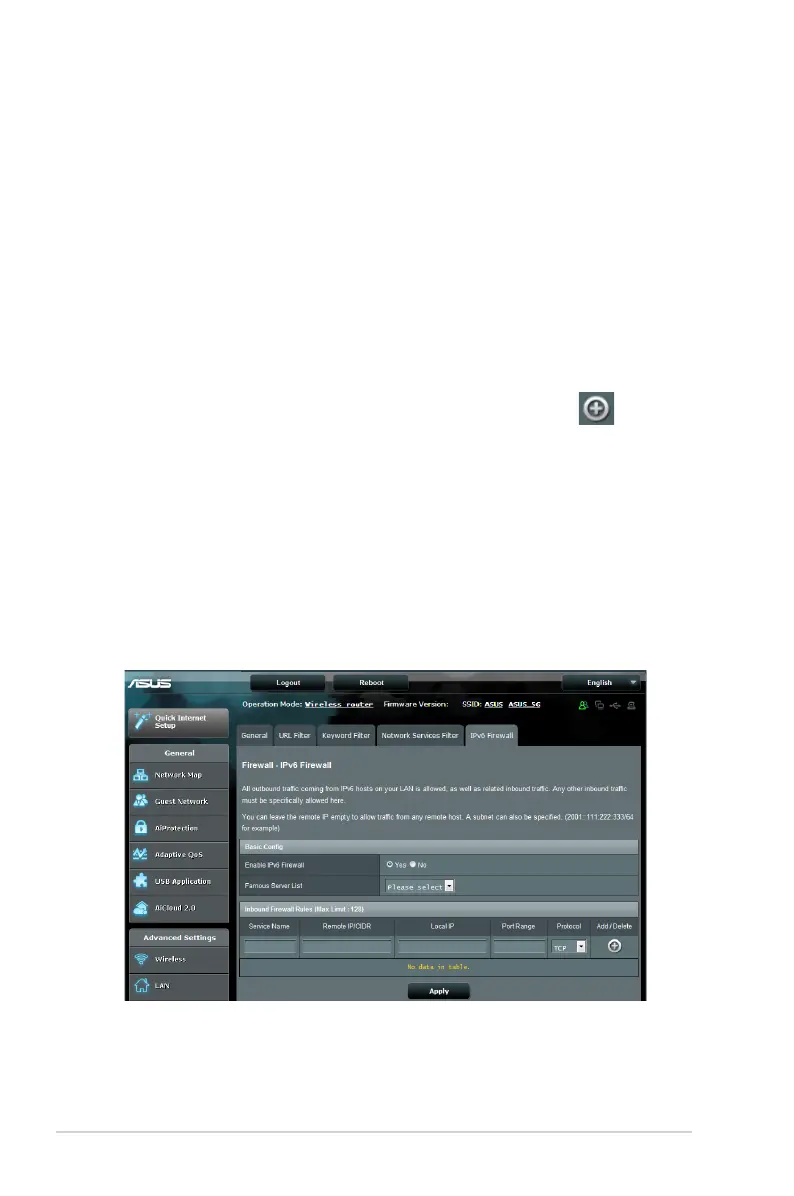 incoming traffic. The IPv6 Firewall function allows incoming traffic