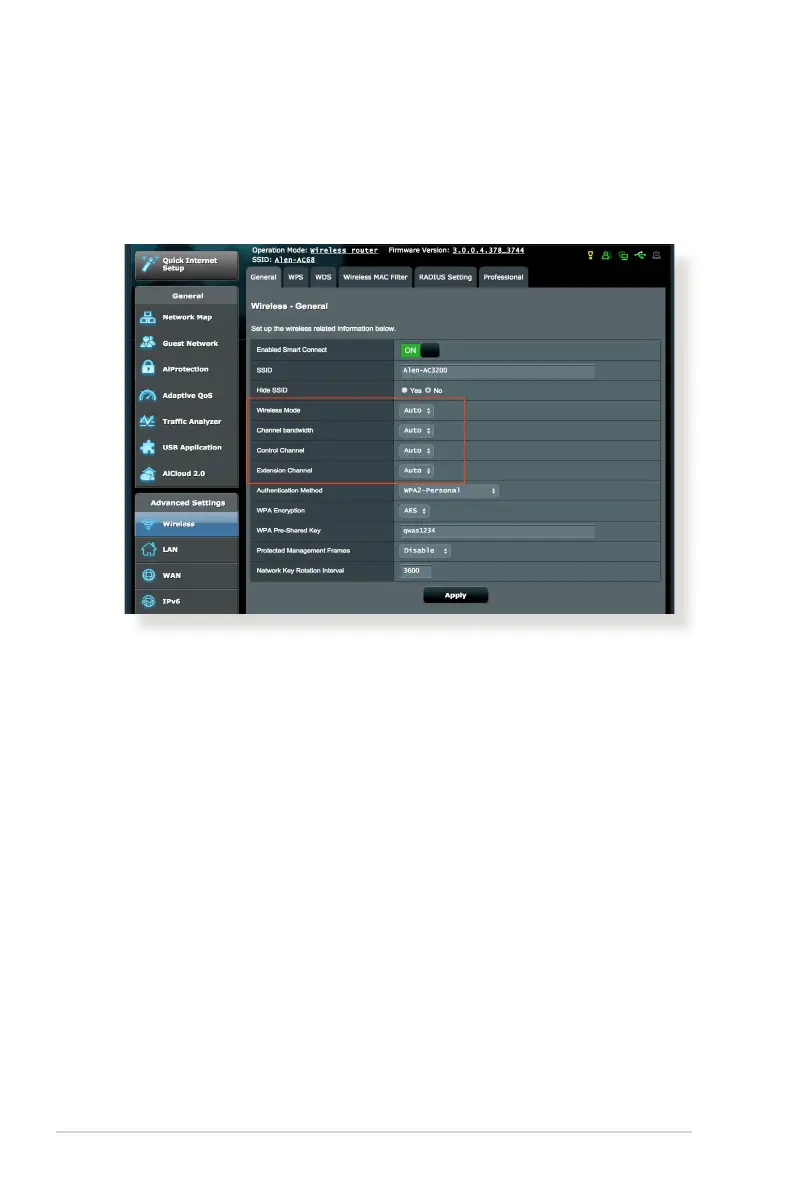 adjust the wireless mode, channel bandwidth, control bandwidth