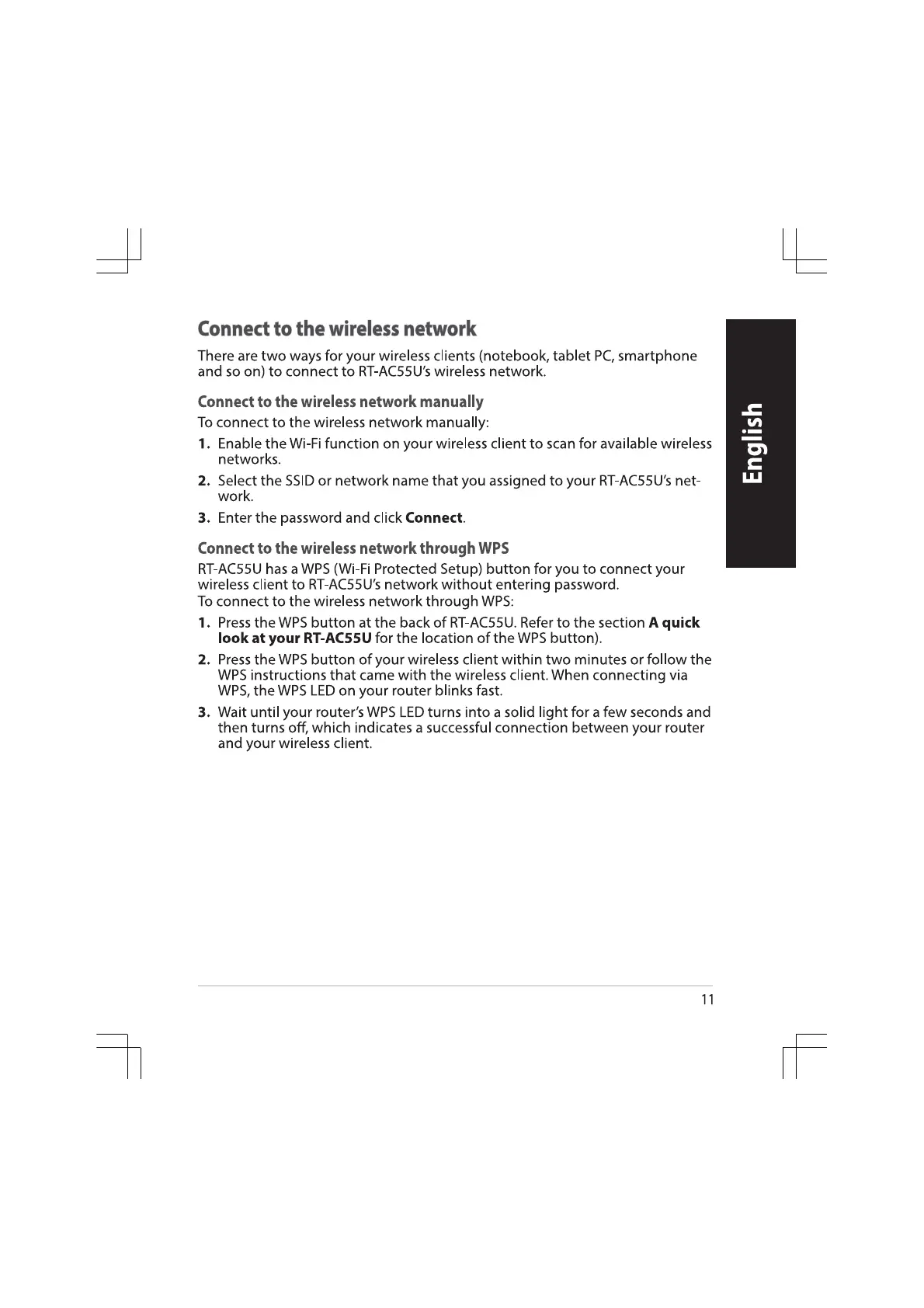 Asus RT-AC55U - Connecting to the Wireless Network; Manual Wireless Connection Steps; WPS Wireless Connection Steps