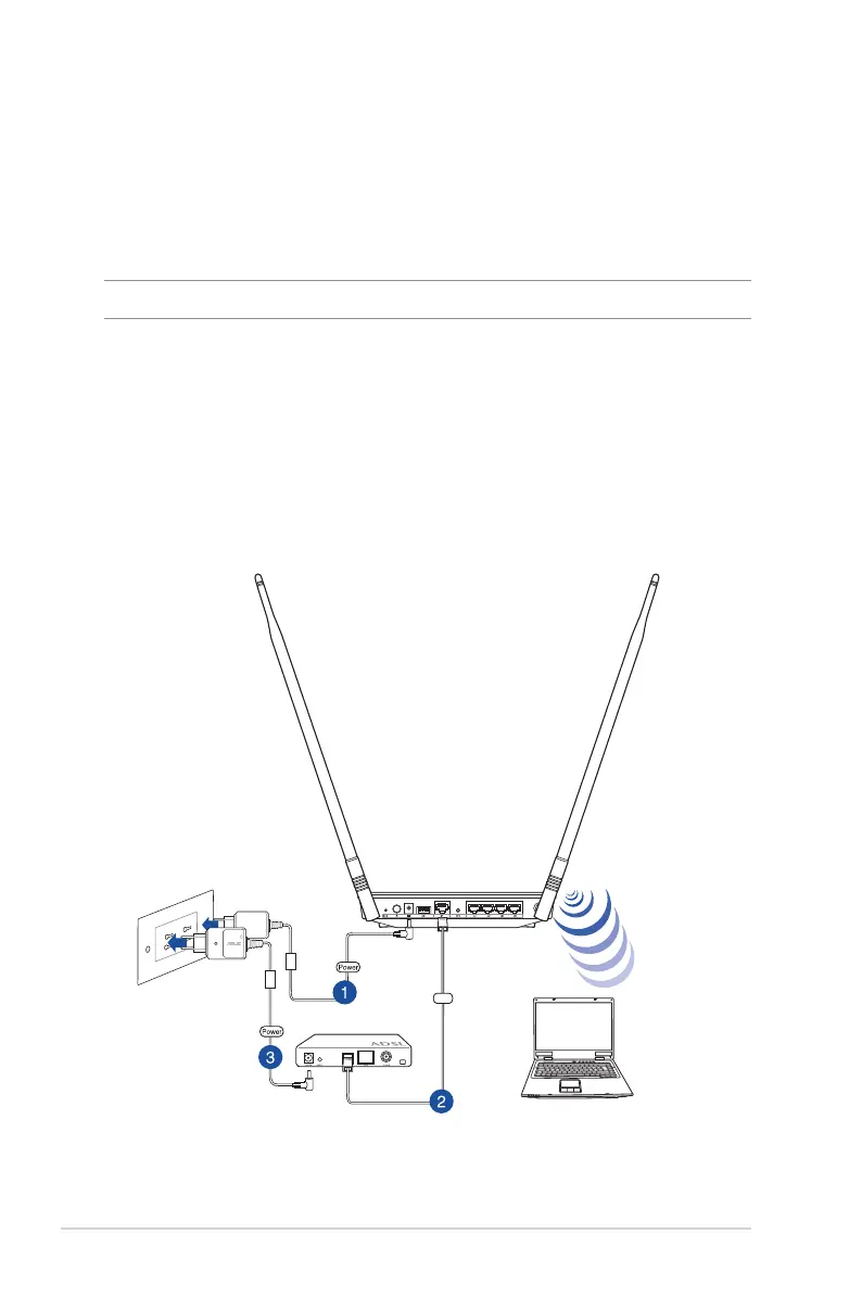 1. Insert your wireless router’s AC adapter to the DC-IN port and