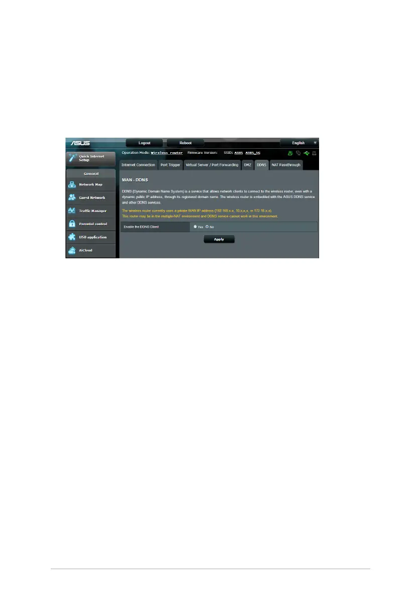 • Enable the DDNS Client: Enable DDNS to access the ASUS