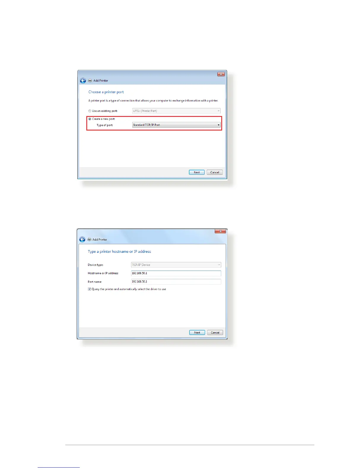 3. Select Create a new port then set Type of Port to Standard