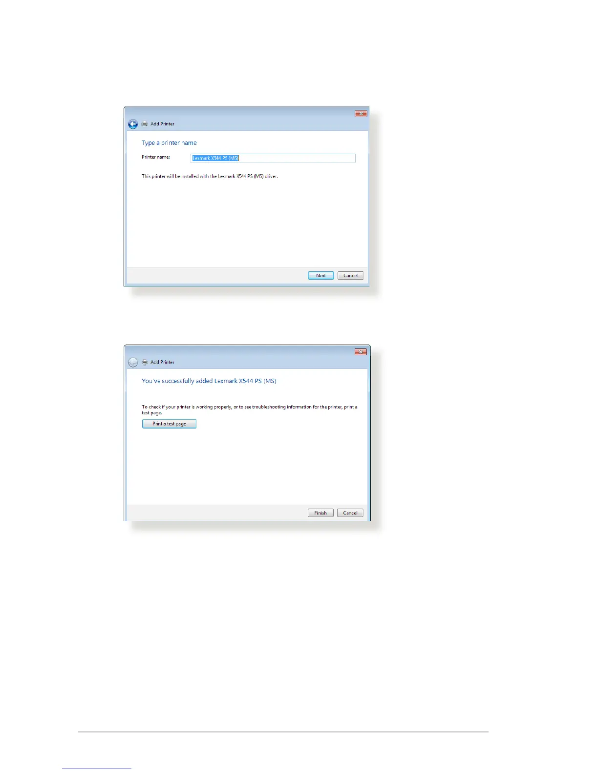 9. Click Next to accept the default name for the printer.