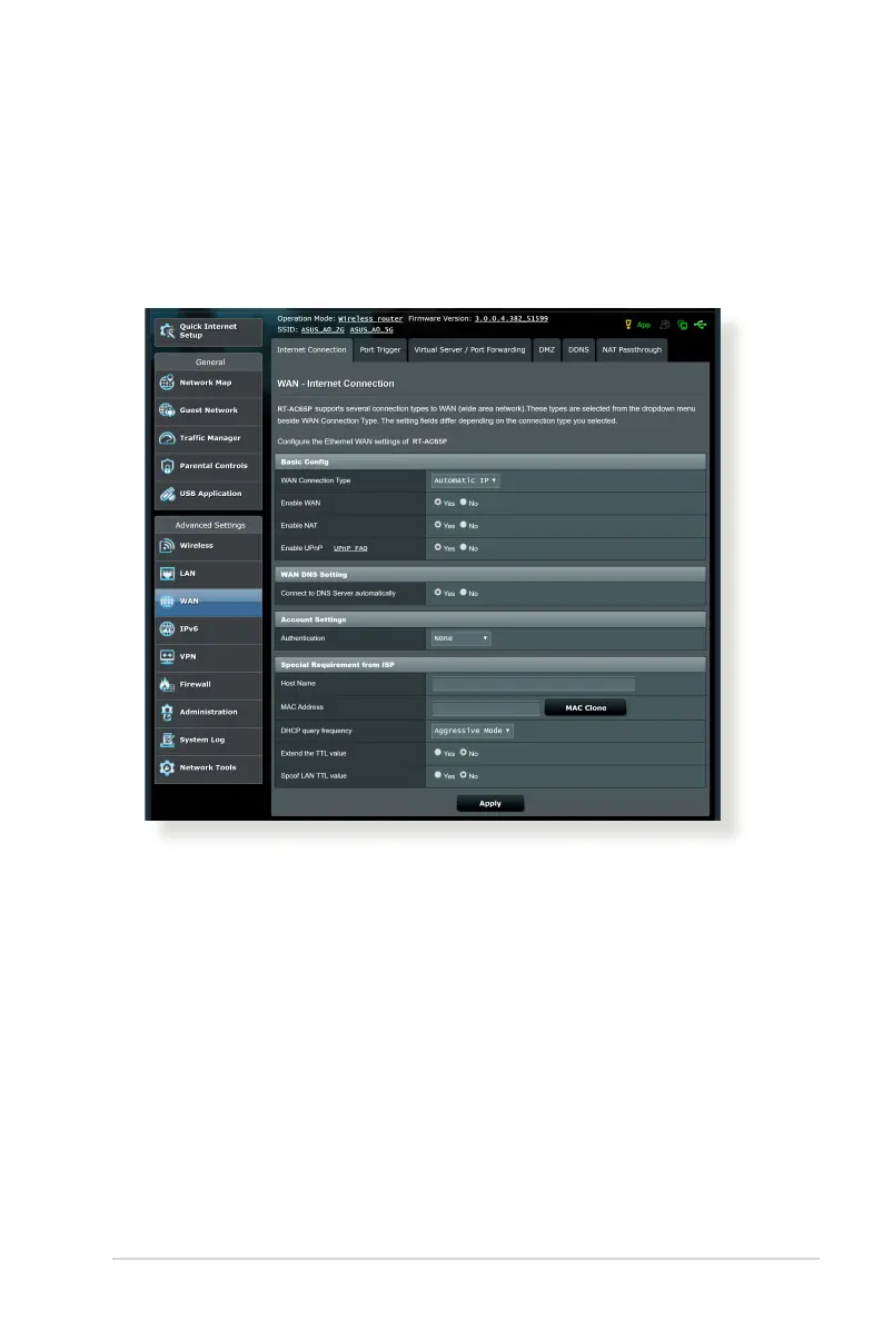 1. From the navigation panel, go to Advanced Settings > WAN >