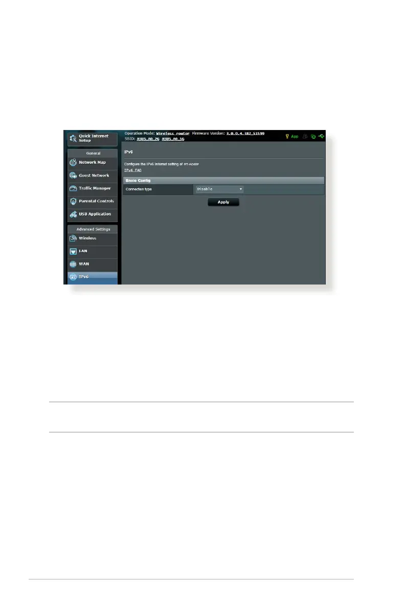 1. From the navigation panel, go to Advanced Settings > IPv6.