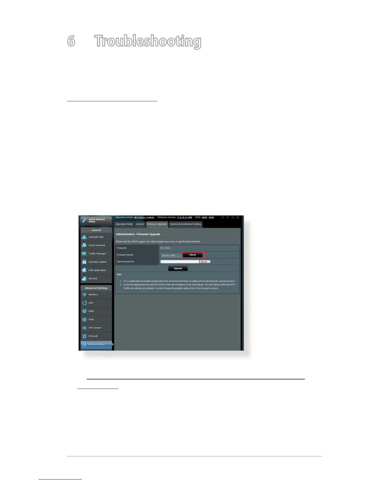 Administration > Firmware Upgrade tab. Click Check to