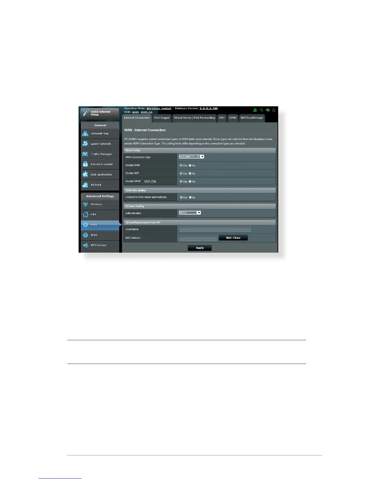 1. From the navigation panel, go to Advanced Settings > WAN >