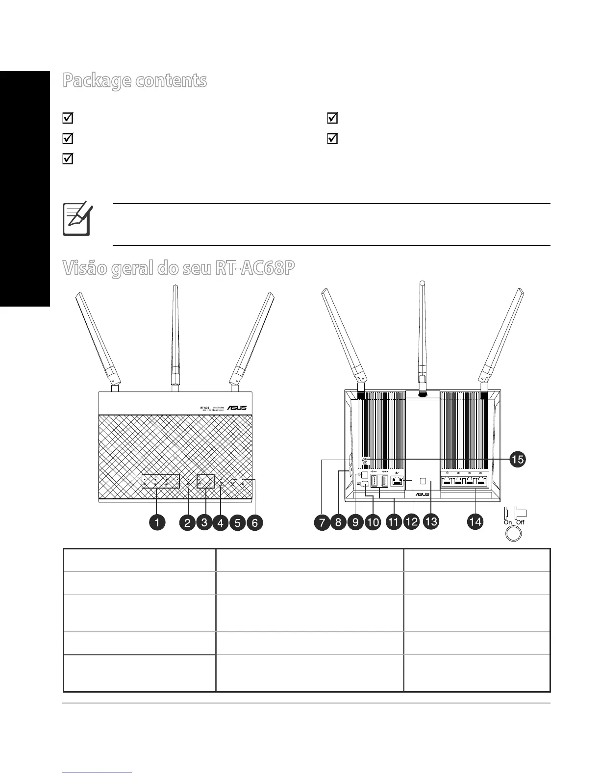 2) LED WAN (Internet) 7) Botão WPS 12) Portas WAN