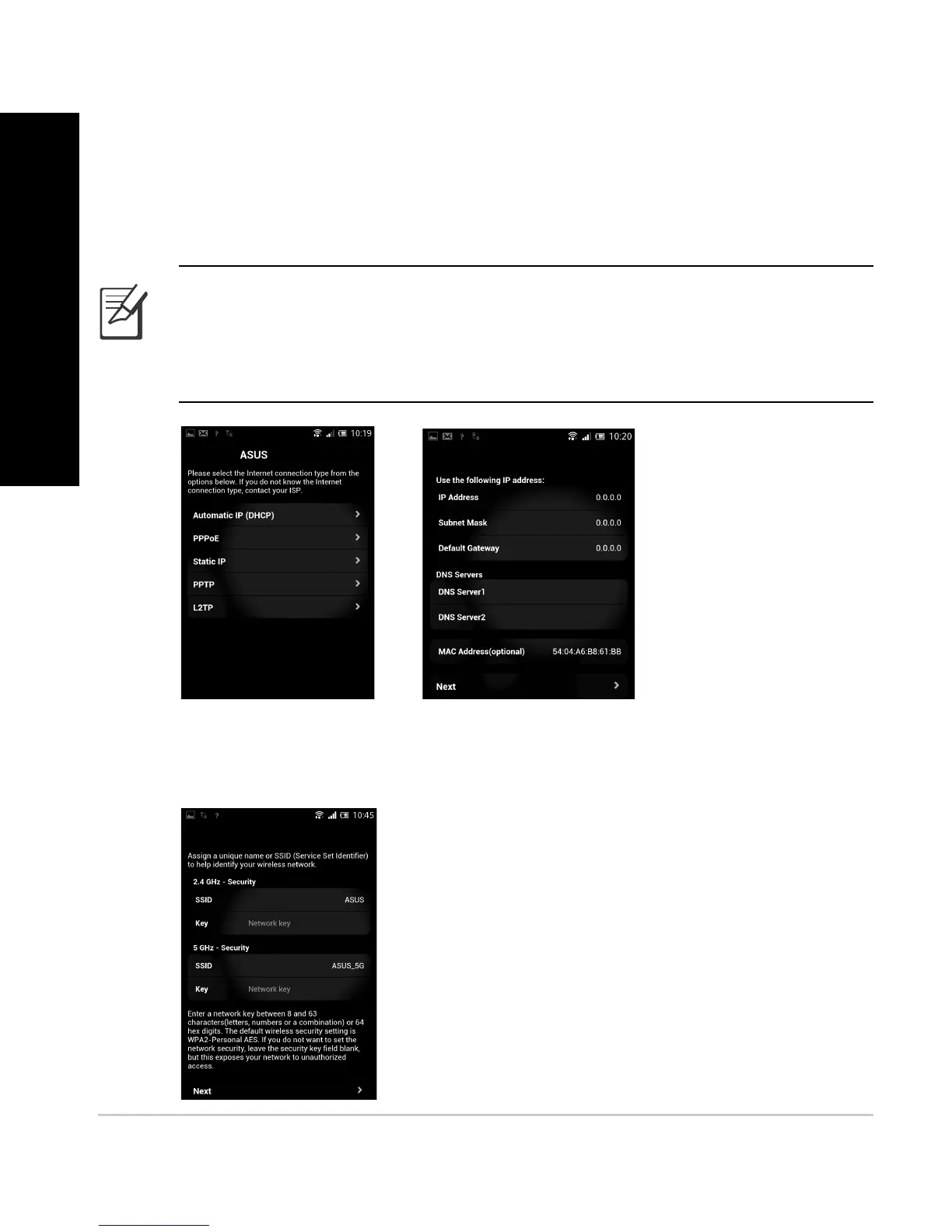 Dynamic IP (Dirección IP dinámica), PPPoE, PPTP, L2TP o Static IP (Direc-