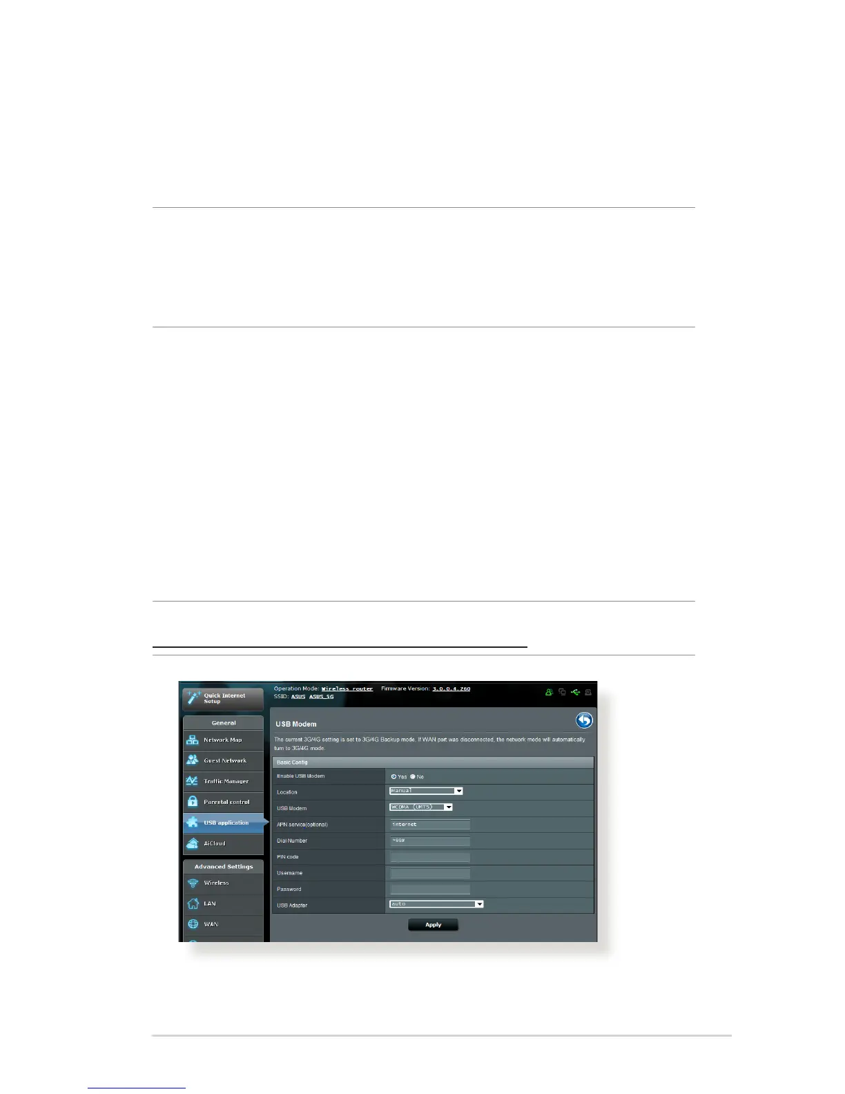 3G/4G USB modems can be connected to RT-AC68R to allow