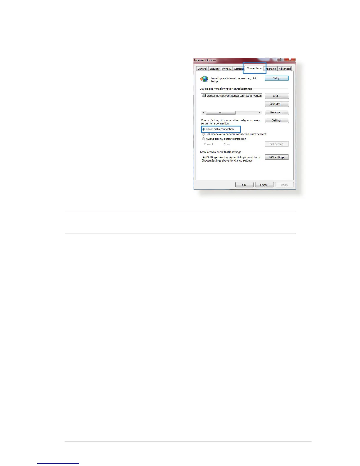 3. Tick Never dial a connection.