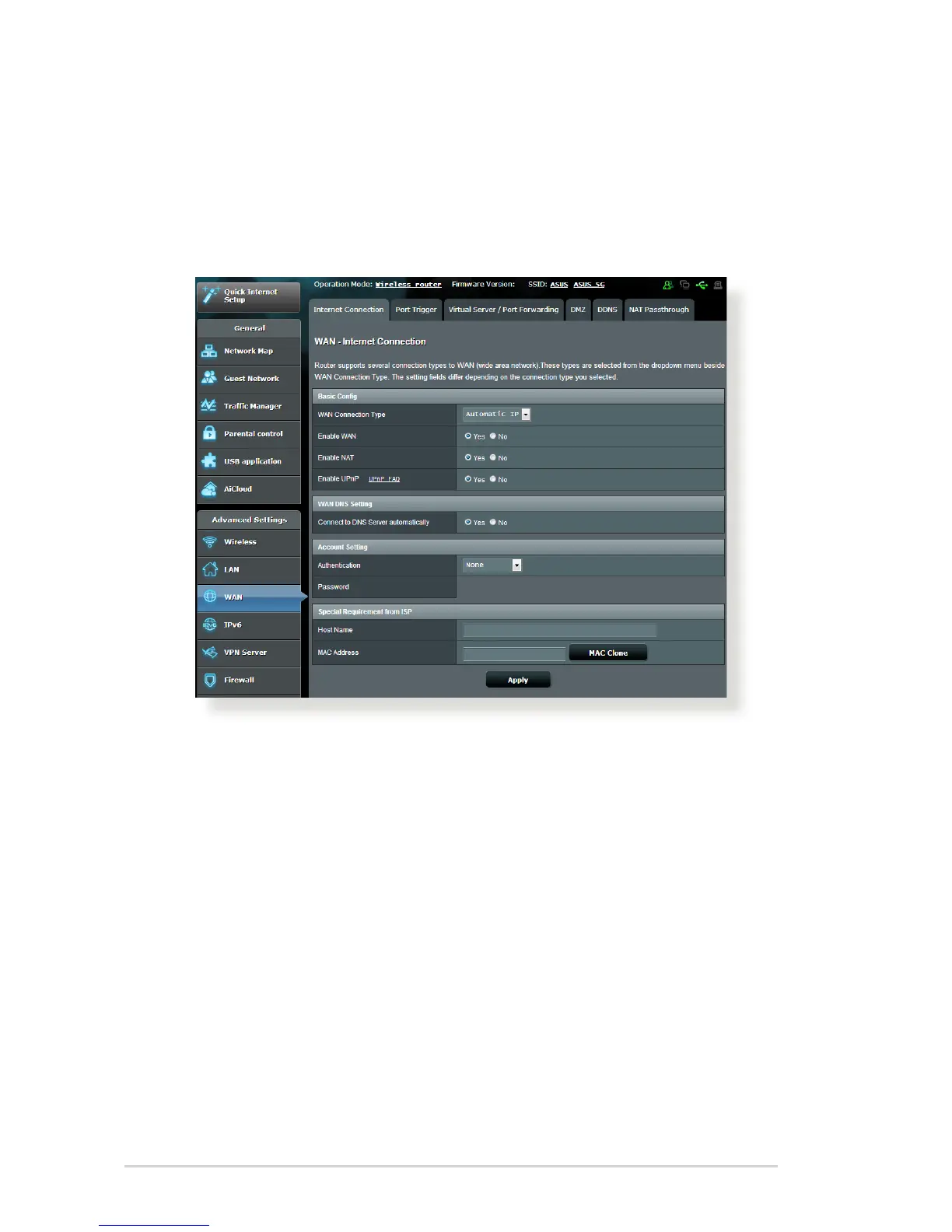 1. From the navigation panel, go to Advanced Settings > WAN >