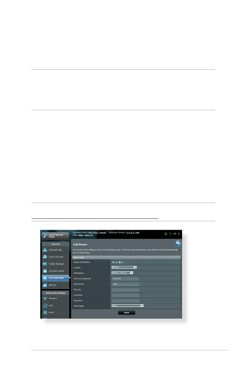 3G/4G USB modems can be connected to RT-AC68W to allow