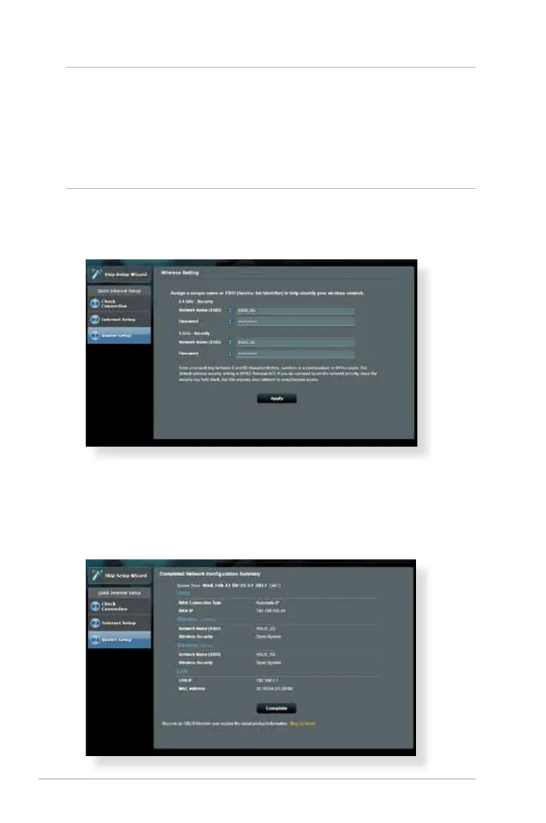 for your 2.4GHz and 5 GHz wireless connection. Click Apply