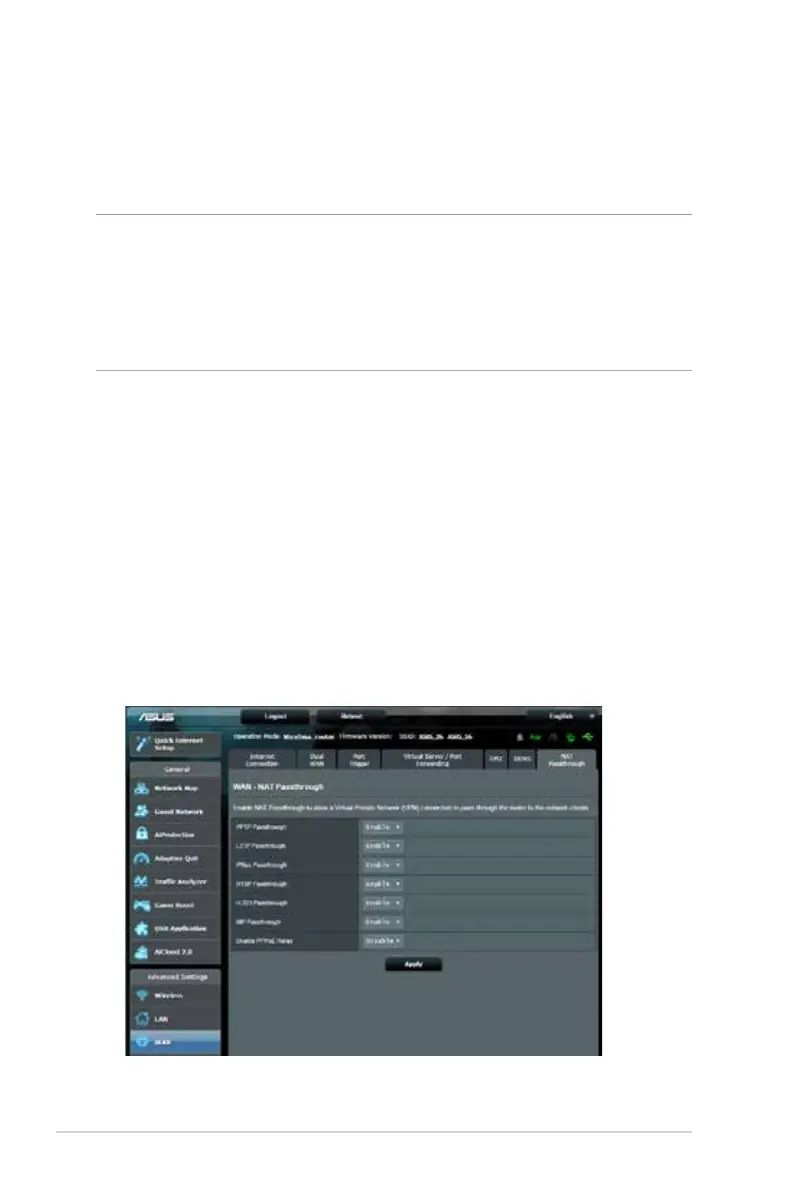 Advanced Settings > WAN > NAT Passthrough tab. When done,