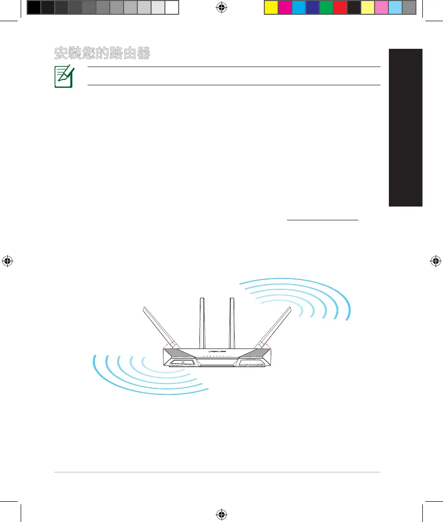 • 建議將路由器放置在中心區域,以覆蓋所有無線行動裝置。