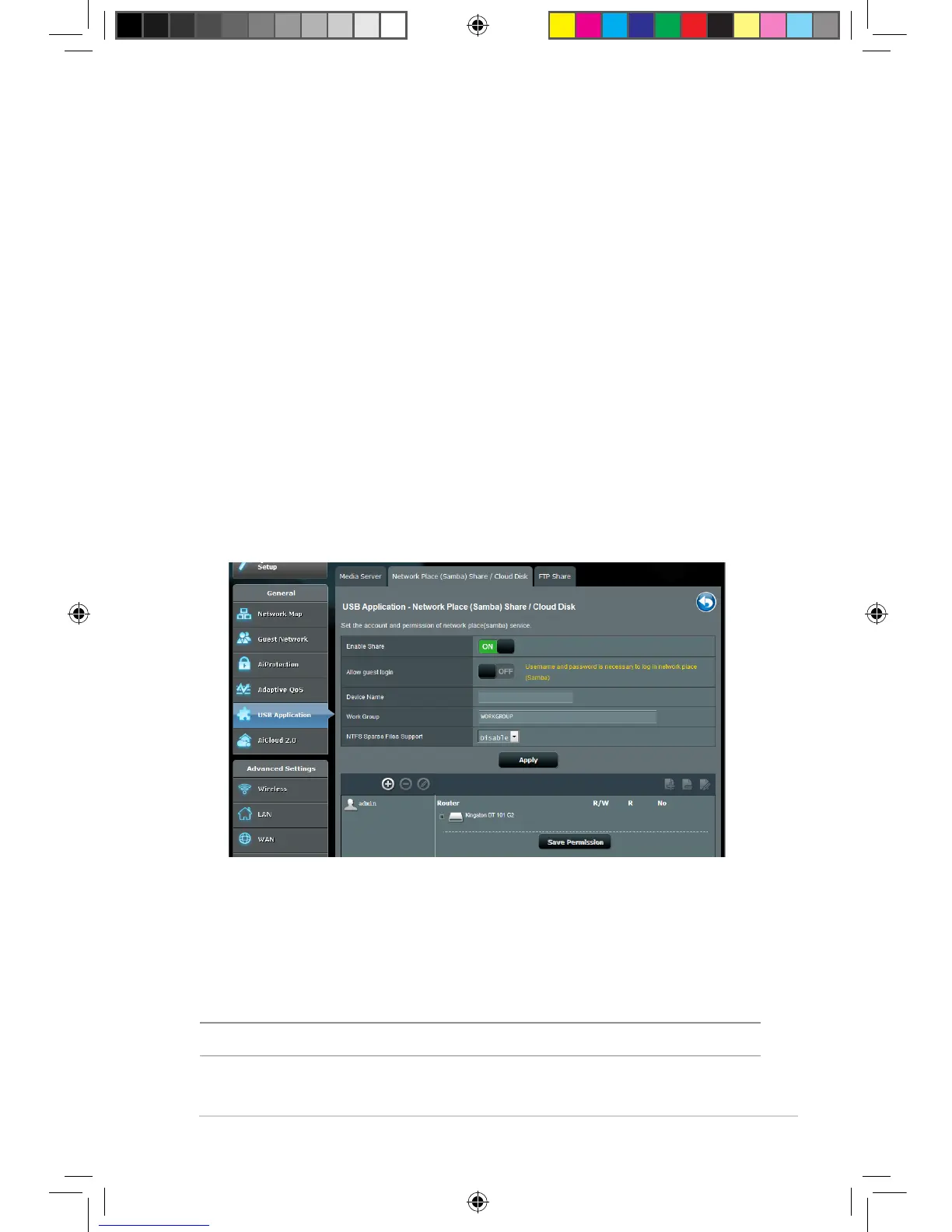 Network Place (Samba) Share allows you to set up the accounts