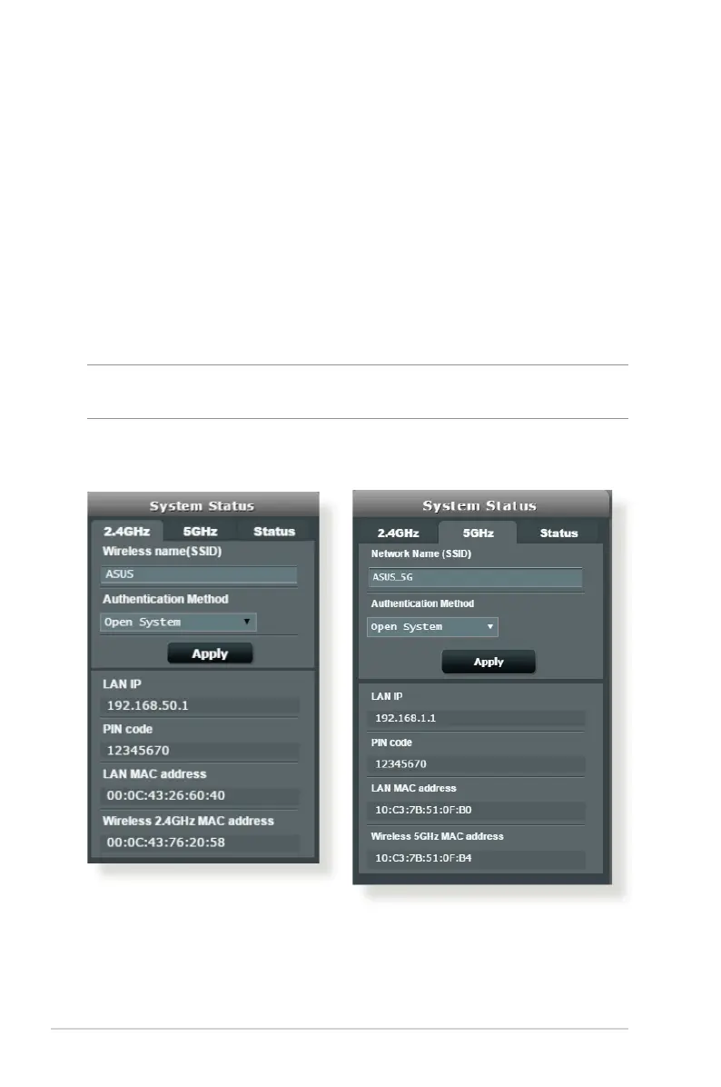 NOTE: You can set up dierent wireless security settings for 2.4GHz and