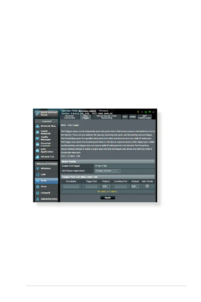 • Enable Port Trigger: Choose Yes to enable Port Trigger.