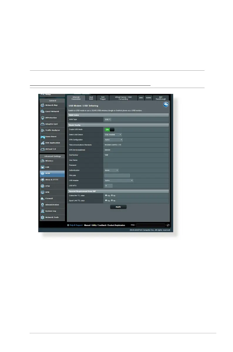 3G/4G USB modems can be connected to RT-AX3000 to allow