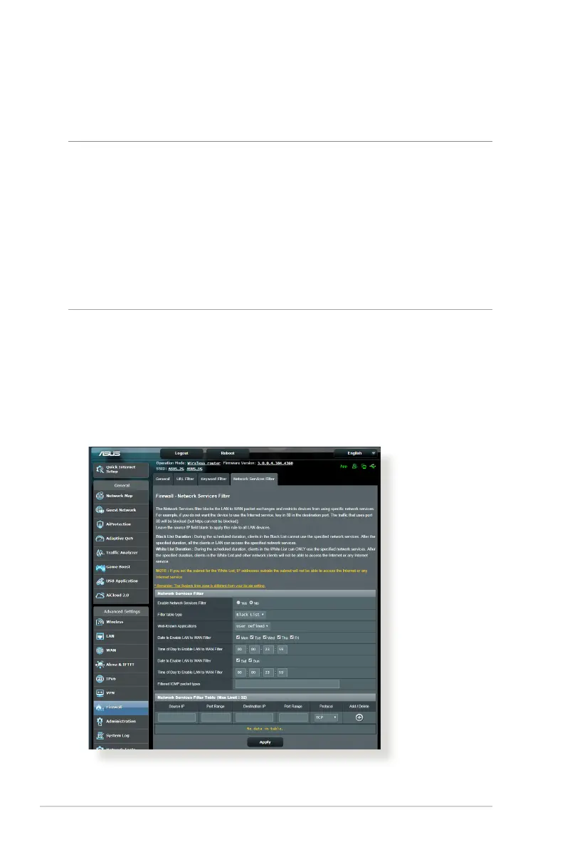 The Network Services Filter blocks LAN to WAN packet exchanges