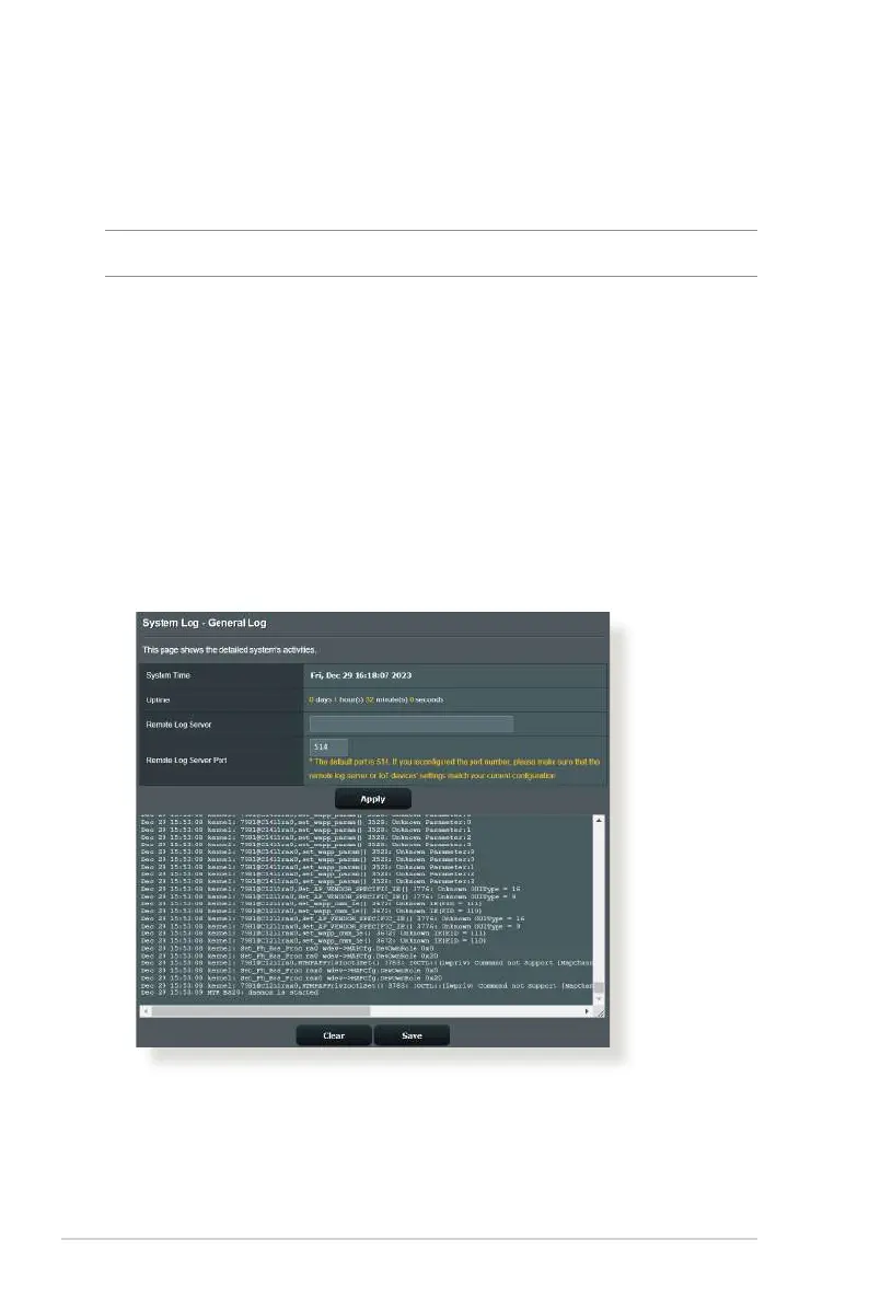 NOTE: System log resets when the router is rebooted or powered o.