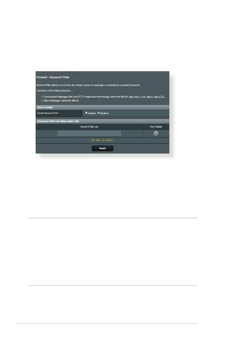 Firewall > Keyword Filter tab.