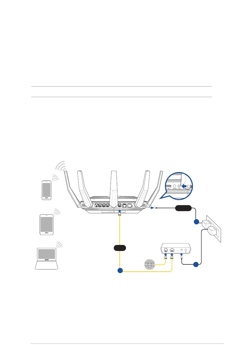 4. Insert your modem’s AC adapter to the DC-IN port and plug it