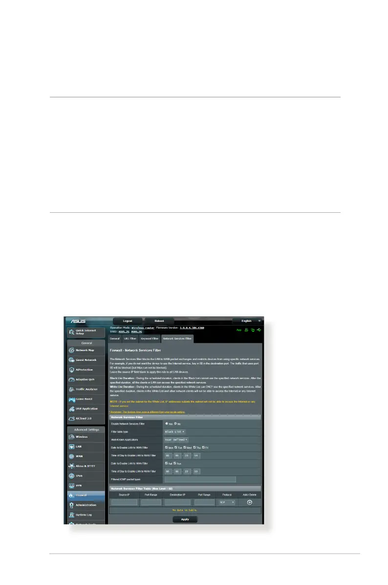 The Network Services Filter blocks LAN to WAN packet exchanges