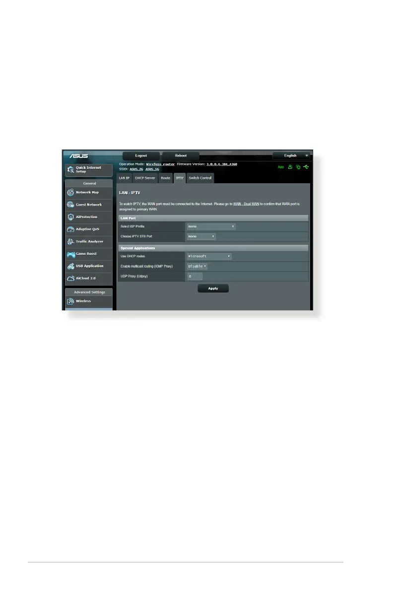 The wireless router supports connection to IPTV services through
