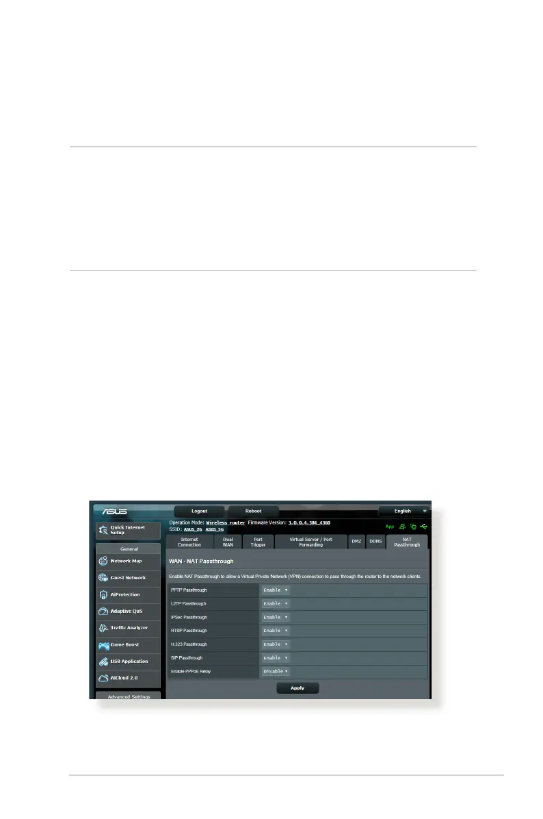Advanced Settings > WAN > NAT Passthrough tab. When done,