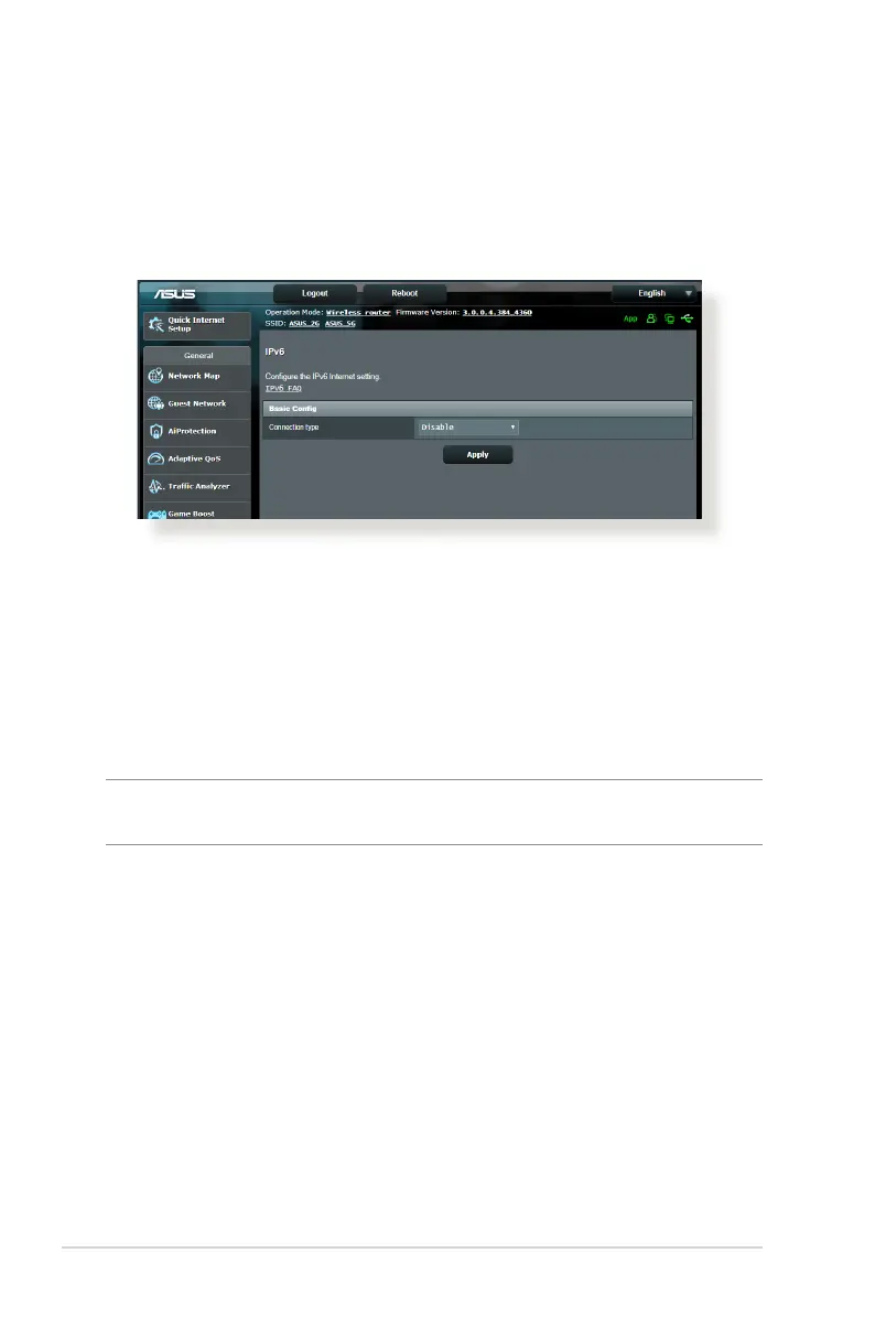 1. From the navigation panel, go to Advanced Settings > IPv6.