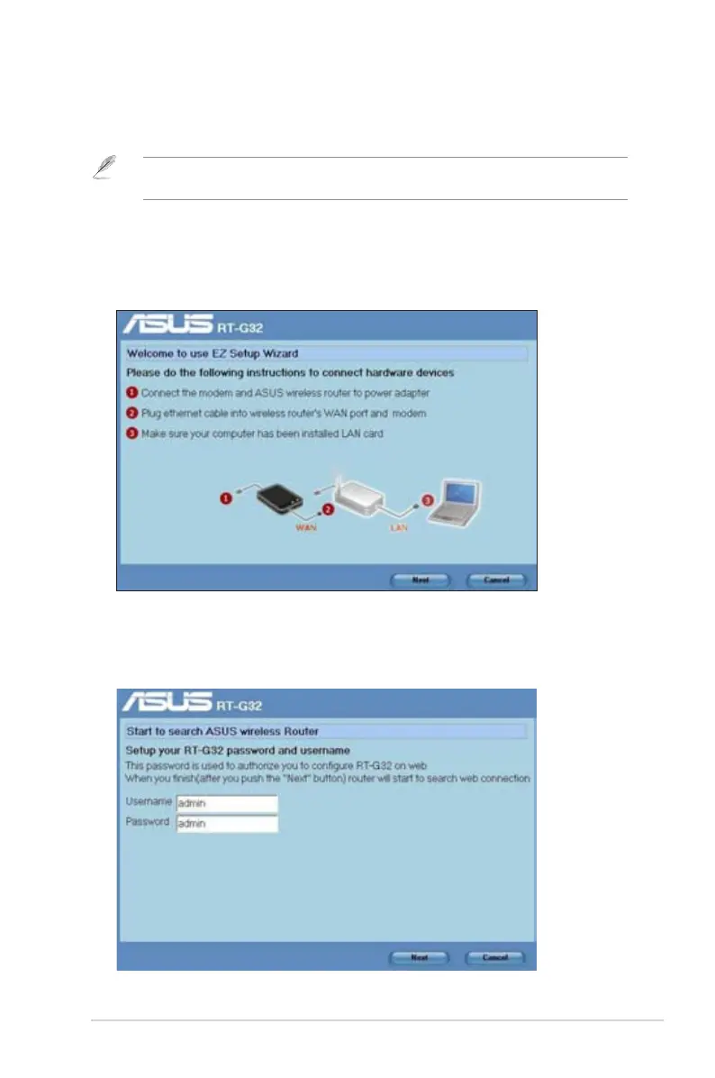 Before you install the EZSetup, ensure that your RT-G32 is connected the modem or PC by