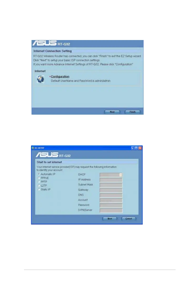 4. Click Next to congure the basic ISP connection settings. Click Finish to nish