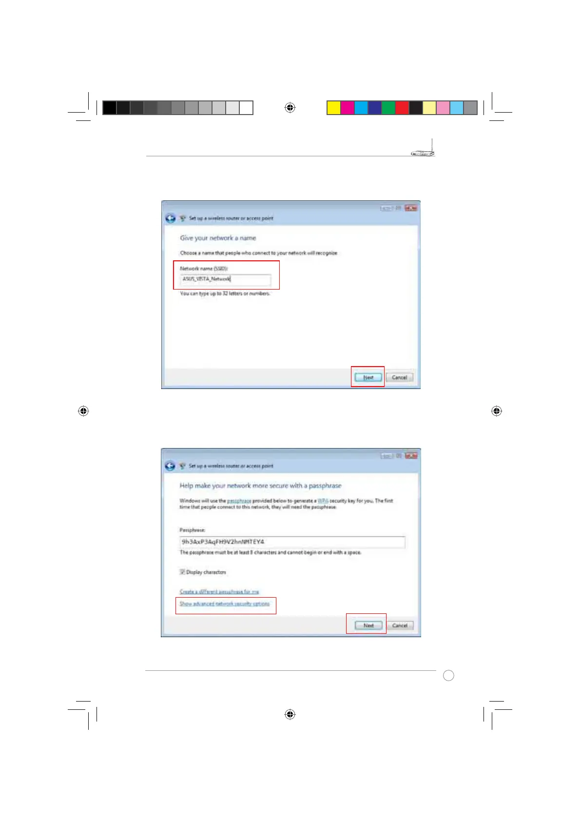 Next. A passphrase is generated for the WPA security.
