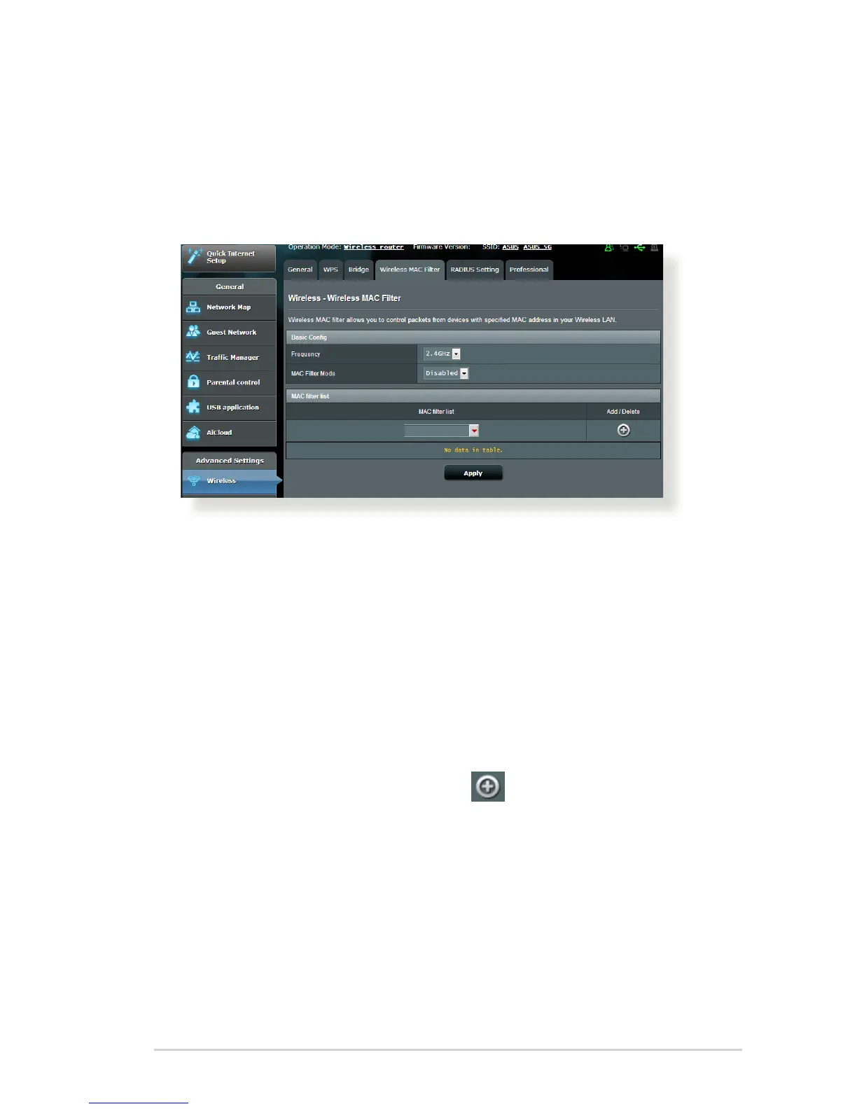 3. On the MAC filter list, click the Add button and key in the