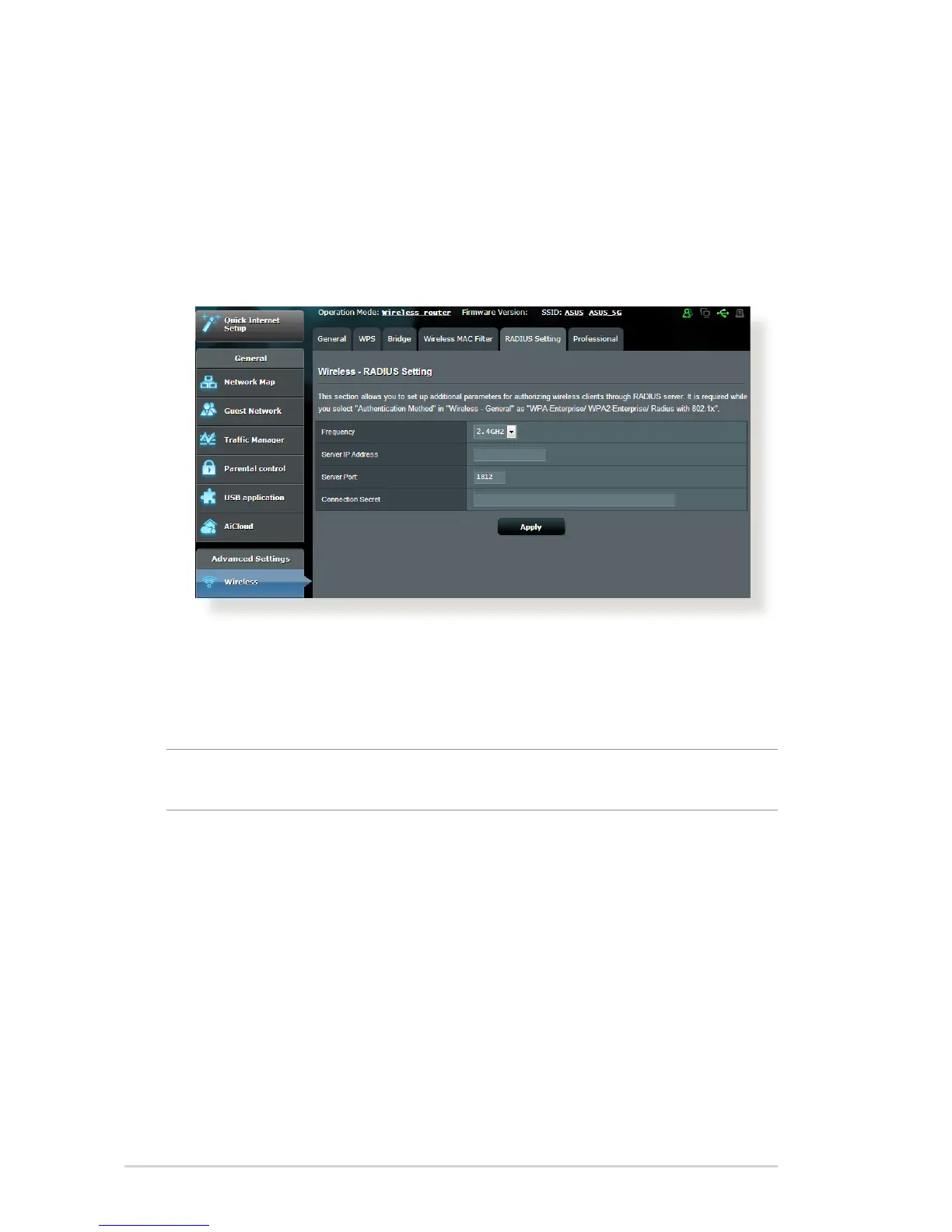 Wireless > RADIUS Setting.