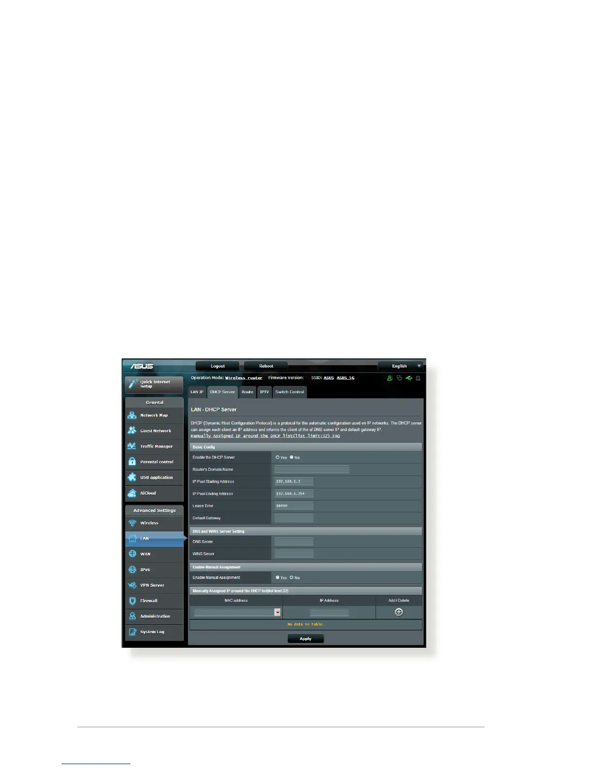 Advanced Settings > LAN > DHCP Server, Basic Config